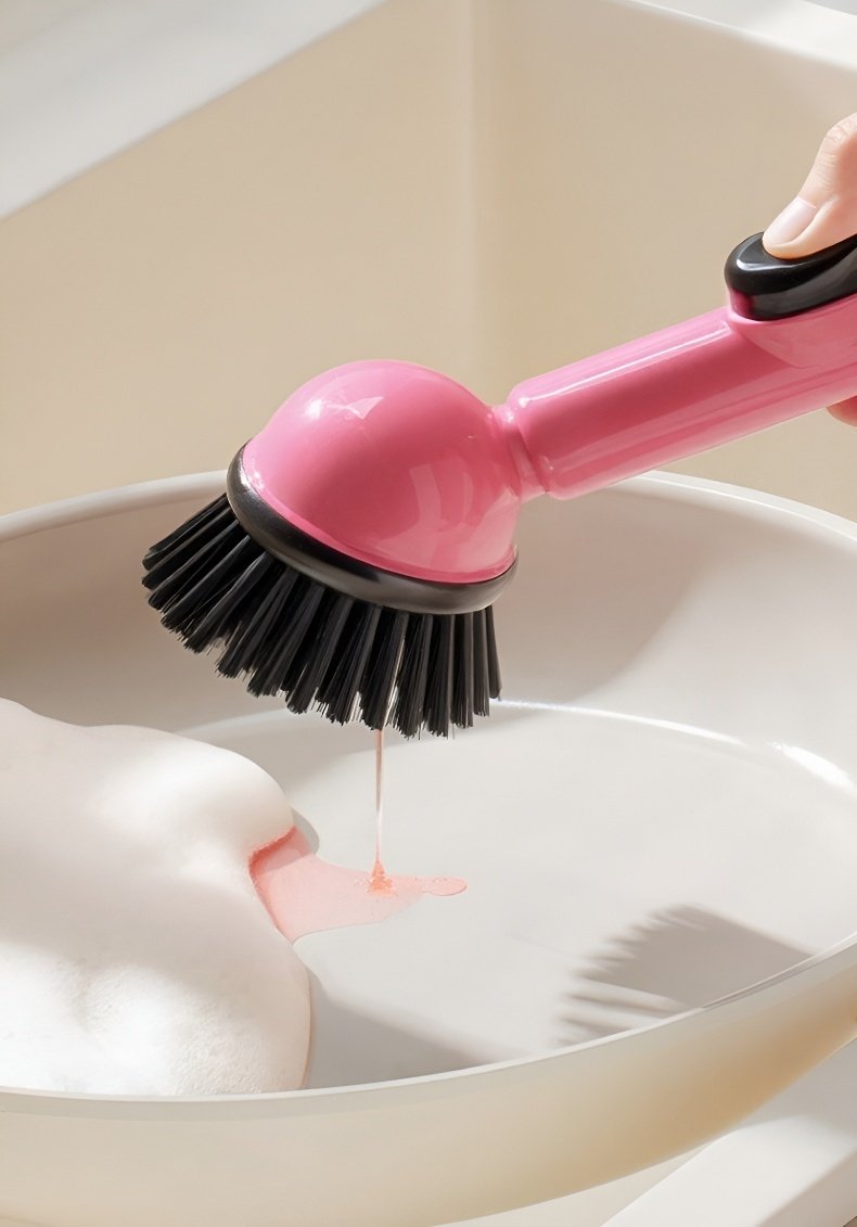 ● 인체공학적으로 설계된 긴 손잡이로 손이 닿기 힘든 깊은 그릇이나 냄비까지 손쉽게 구석구석 청소할 수 있습니다. ● 내장된 액체 펌핑 기능으로 세제를 손에 묻히지 않고 간편하게 사용할 수 있어 위생적이고 편리합니다. ● 고밀도 브러쉬 소재로 찌든 때와 음식물 자국까지 한 번에 깨끗하게 제거해주며, 그릇 표면을 손상시키지 않습니다. ● 브러쉬 헤드는 교체가 가능해 오래도록 위생적으로 사용 가능하며, 경제적입니다. ● 미끄럼 방지 손잡이로 젖은 손으로도 미끄러지지 않아 안전하게 사용할 수 있습니다.